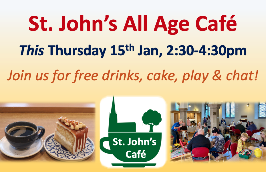 Do pop in for free refreshments at our next all age Church cafe on Thursday 15th January, from 2:30-4:30pm.