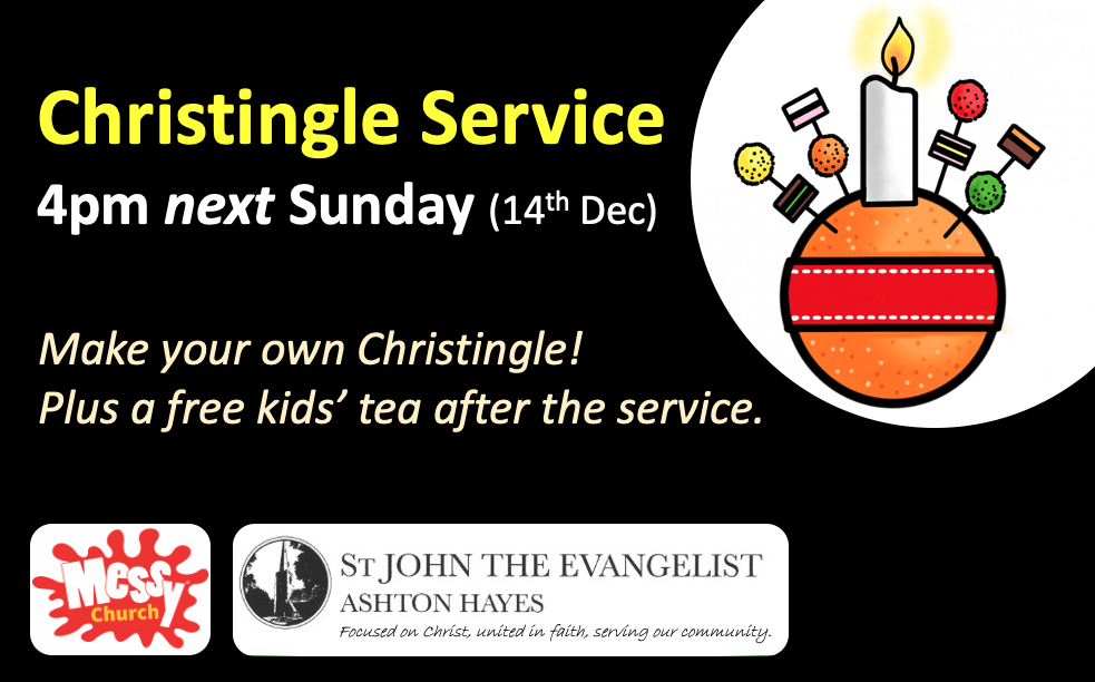 Join us for our Messy Church Christingle service on 14th December at 4pm, including Christingle-making, songs, a video and a free children’s tea.
